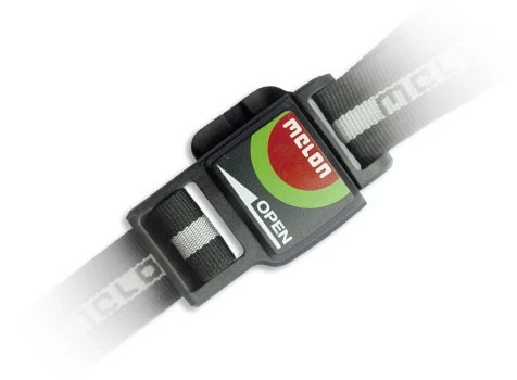 Hjelmen har en skruespænde i nakken der gør det let at indstille hjelmen og lukkes med en magnet spænde under hagen.