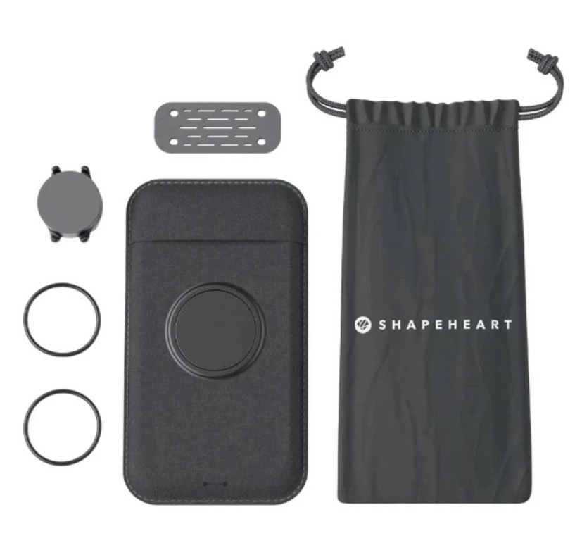 Shapeheart Bike Mount er en mobilholder med magnetbeslag som monteres på styr eller frempind. Der kræves ingen brug af værktøj for at montere beslaget. Beslaget består af en kraftig magnet så telefonen let kan klikkes af og på. Der medfølger et hylster/lomme som har en magnetisk bagside og som er både vandtæt og har touch-funktion. Telefonen lægges i hylsteret og sættes fast til magnetbeslaget og du er klar til at cykle. Telefonen sidder stabilt og kan holde til kørsel i ujævnt terræn om det er skov eller på brosten.
