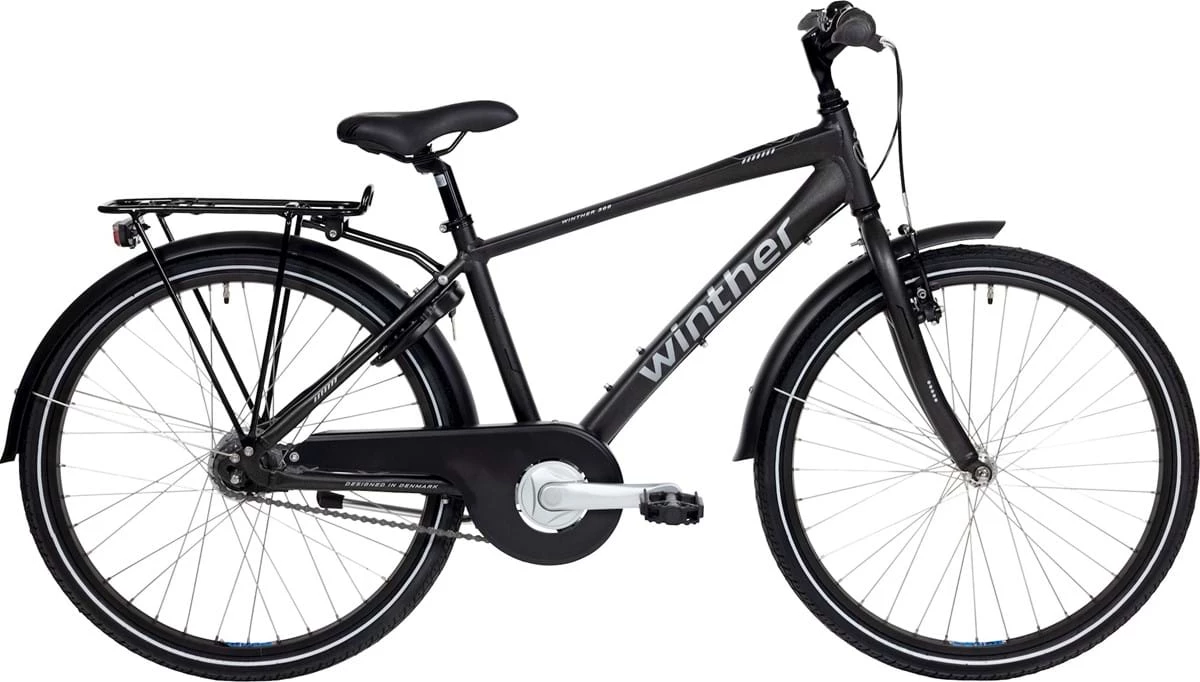 Winther 300 er en let og smart kvalitetscykel til junior, der vil have en sej cykel, som kan bruges året rundt. 300 fås med masser af udstyr såsom bagagebærer, skærme, batteribaglygte, lås og støtteben.