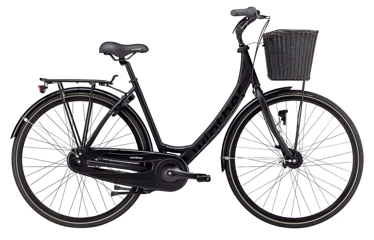 Black Winther 4 dame cykel med lav indstigning, 7-indvendige Nexus gear, fodbremse og rullebremse for samt dynamo forlygte.
